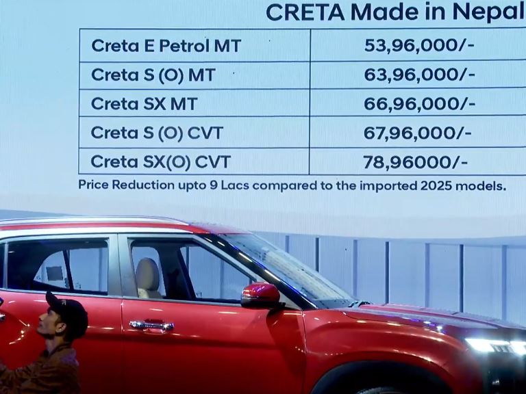 नेपालमै बनेको क्रेटा, आयात गरिएका क्रेटाको तुलनामा ९ लाख रुपैयाँसम्म सस्तो पर्ने कम्पनीले जनाएको छ।
